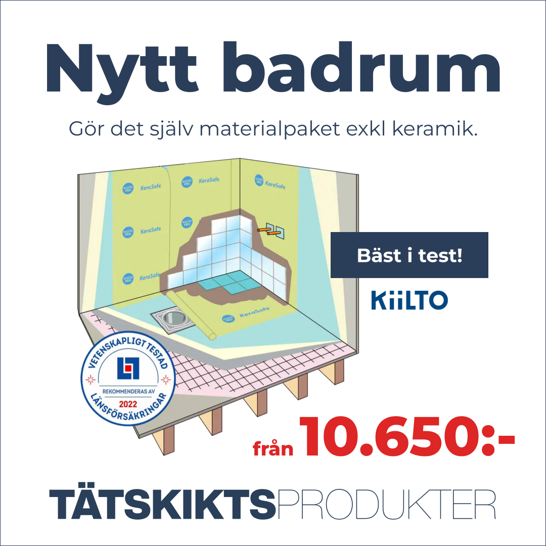Hos oss hittar du Kiiltos testvinnande tätskiktssystem, flytspackel, keramik, verktyg m.m. Vi erbjuder även färdiga materialpaket för badrumsrenovering, vilket gör det enkelt att komma igång med ditt projekt.